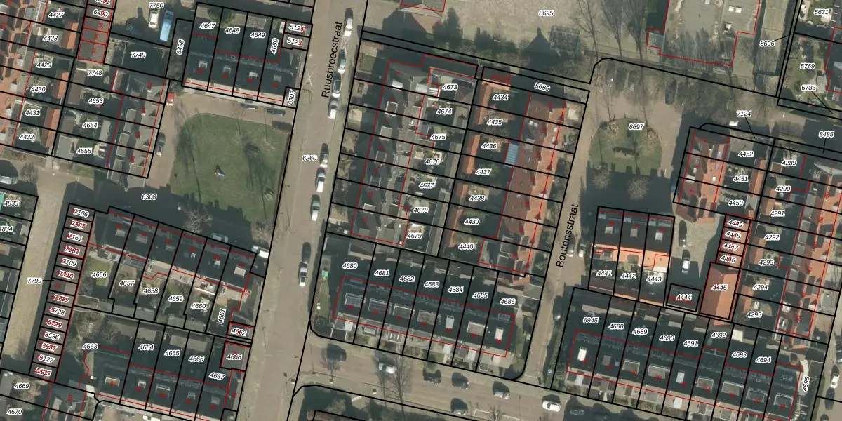 Gebruik de zoekbalk of klik op een perceel om informatie over het perceel te bekijken.