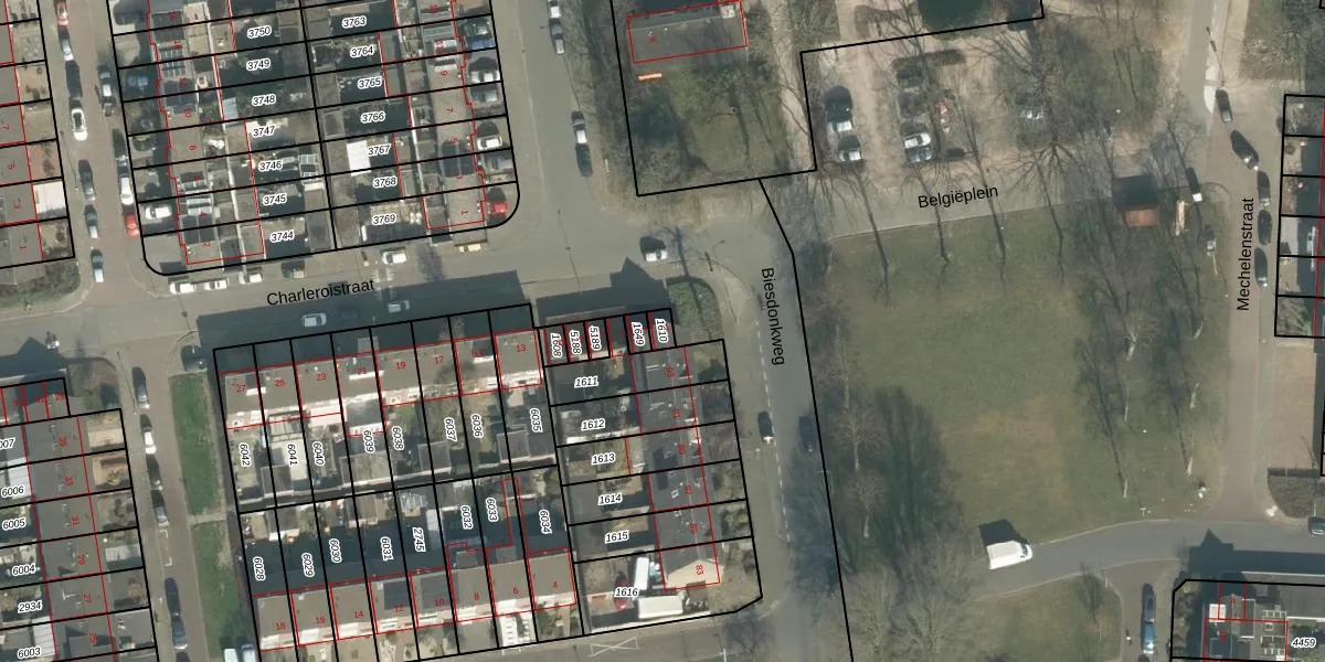 Gebruik de zoekbalk of klik op een perceel om informatie over het perceel te bekijken.