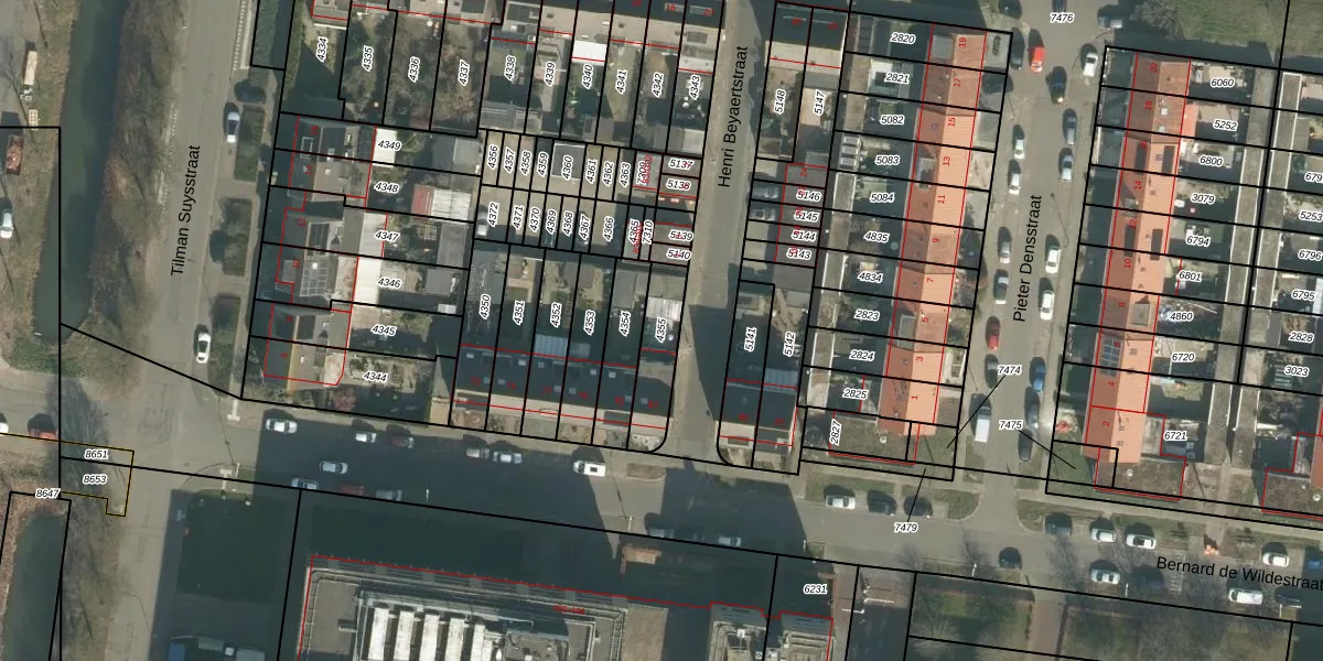 Gebruik de zoekbalk of klik op een perceel om informatie over het perceel te bekijken.