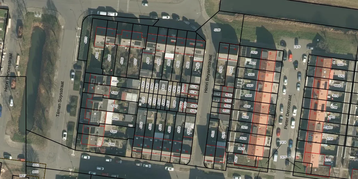 Gebruik de zoekbalk of klik op een perceel om informatie over het perceel te bekijken.