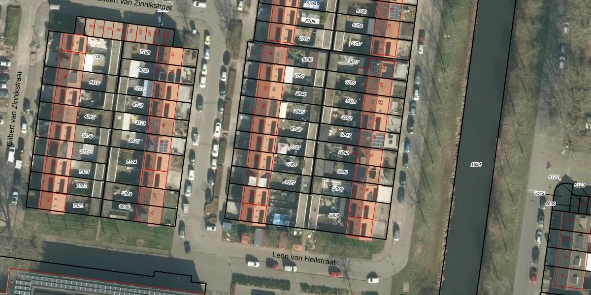 Gebruik de zoekbalk of klik op een perceel om informatie over het perceel te bekijken.