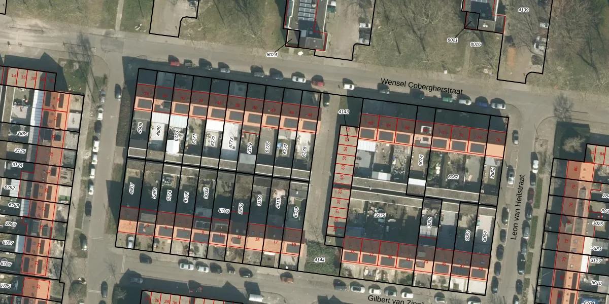 Gebruik de zoekbalk of klik op een perceel om informatie over het perceel te bekijken.
