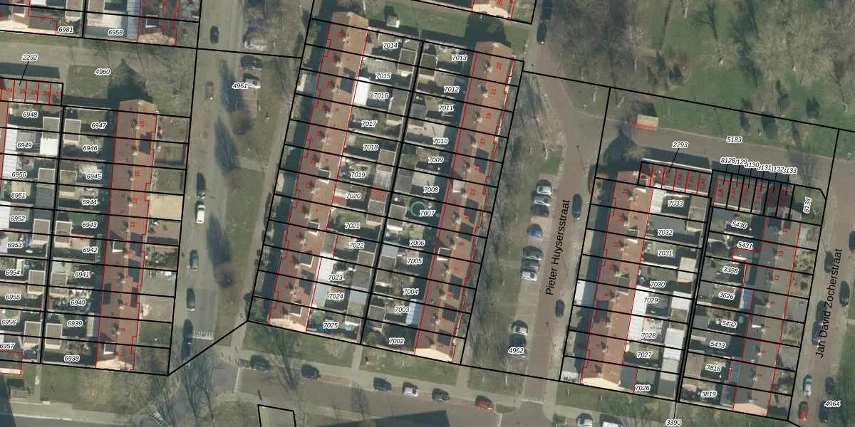 Gebruik de zoekbalk of klik op een perceel om informatie over het perceel te bekijken.