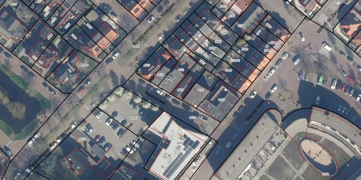 Gebruik de zoekbalk of klik op een perceel om informatie over het perceel te bekijken.