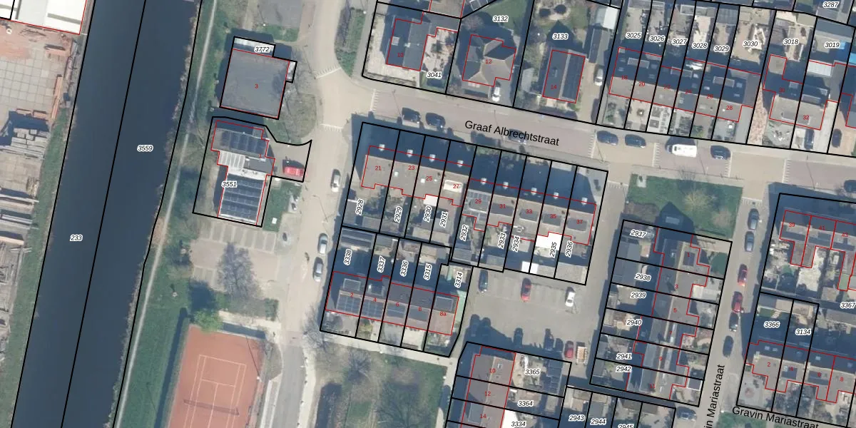 Gebruik de zoekbalk of klik op een perceel om informatie over het perceel te bekijken.