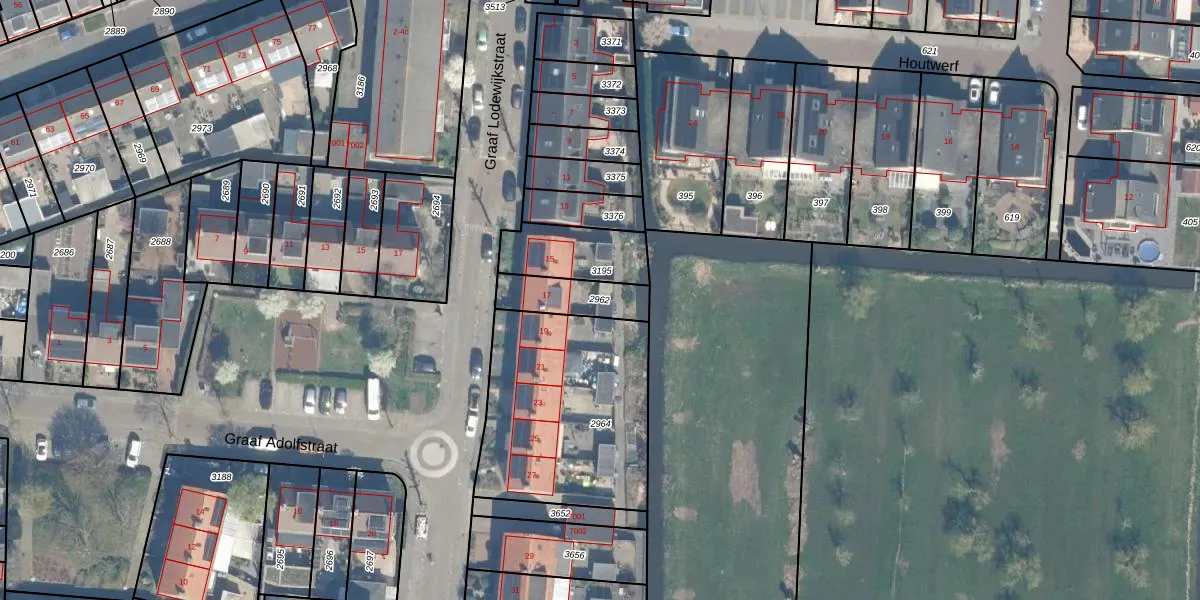Gebruik de zoekbalk of klik op een perceel om informatie over het perceel te bekijken.