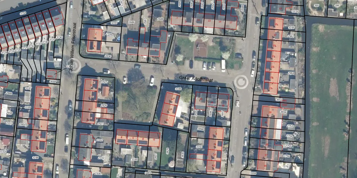 Gebruik de zoekbalk of klik op een perceel om informatie over het perceel te bekijken.