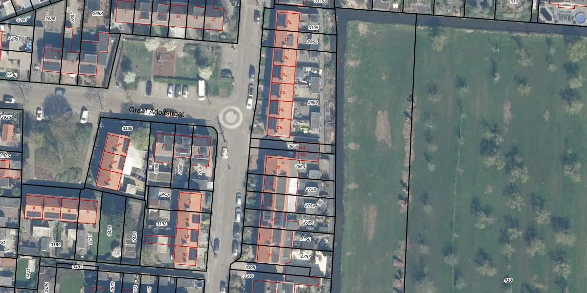 Gebruik de zoekbalk of klik op een perceel om informatie over het perceel te bekijken.