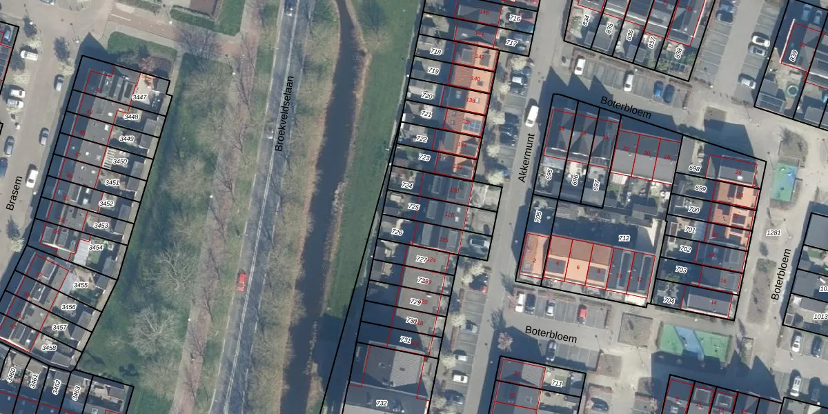 Gebruik de zoekbalk of klik op een perceel om informatie over het perceel te bekijken.