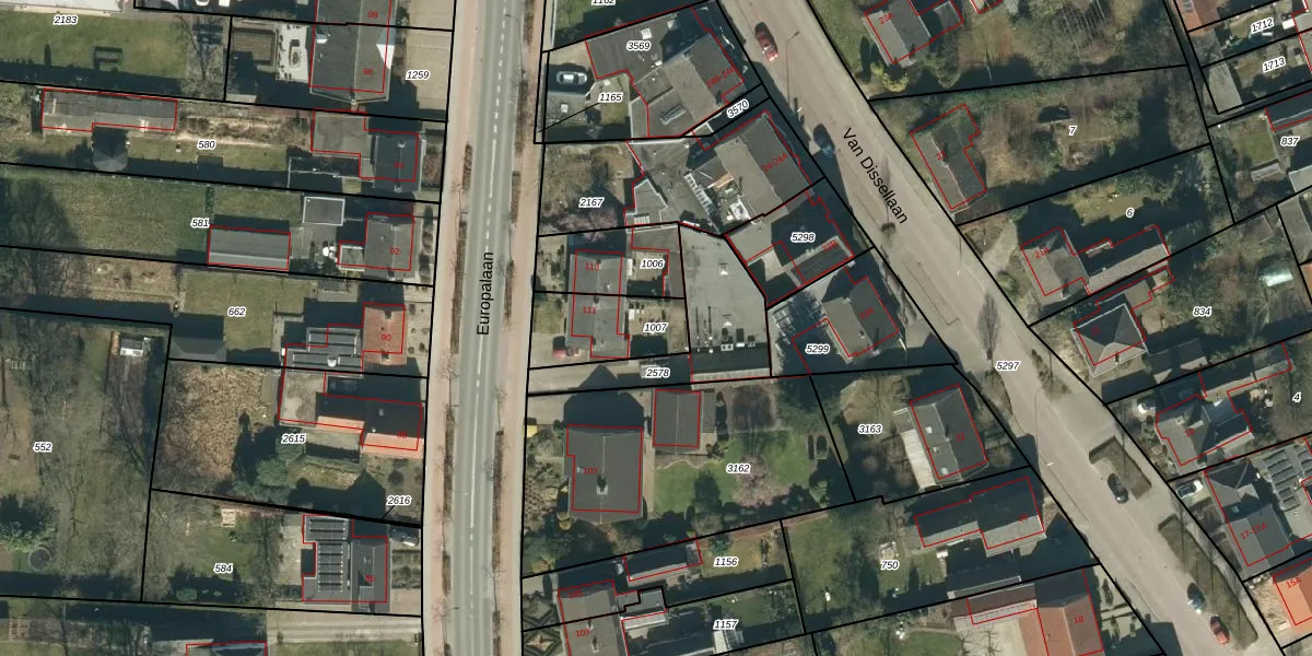 Gebruik de zoekbalk of klik op een perceel om informatie over het perceel te bekijken.