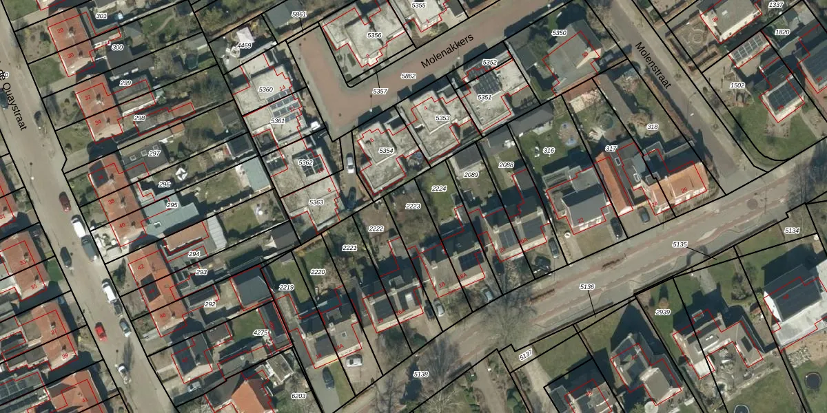 Gebruik de zoekbalk of klik op een perceel om informatie over het perceel te bekijken.
