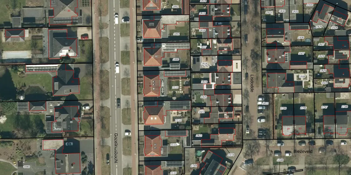 Gebruik de zoekbalk of klik op een perceel om informatie over het perceel te bekijken.