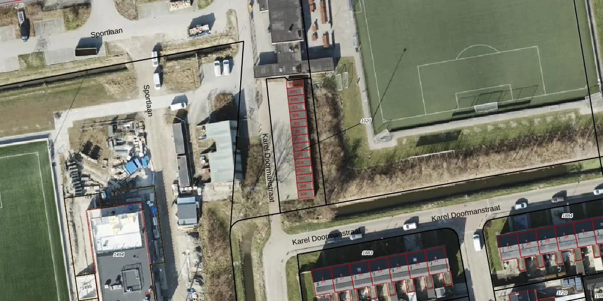 Gebruik de zoekbalk of klik op een perceel om informatie over het perceel te bekijken.