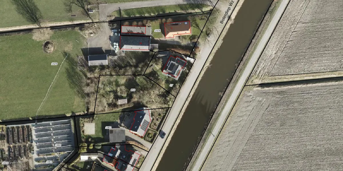 Gebruik de zoekbalk of klik op een perceel om informatie over het perceel te bekijken.