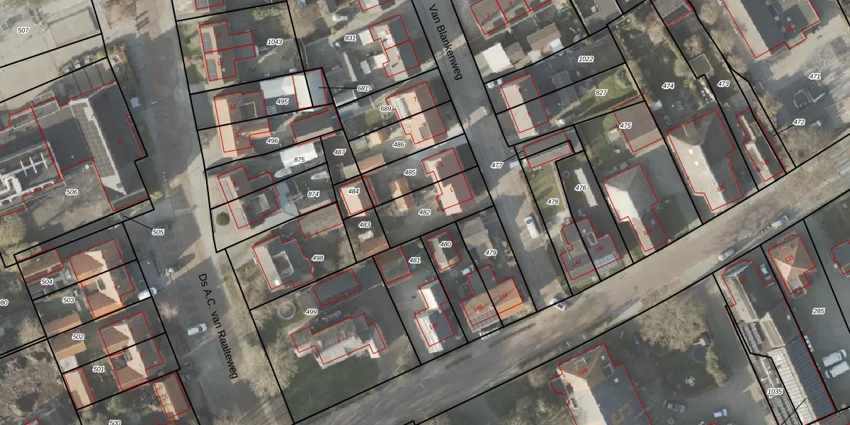 Gebruik de zoekbalk of klik op een perceel om informatie over het perceel te bekijken.