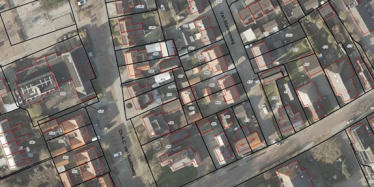 Gebruik de zoekbalk of klik op een perceel om informatie over het perceel te bekijken.