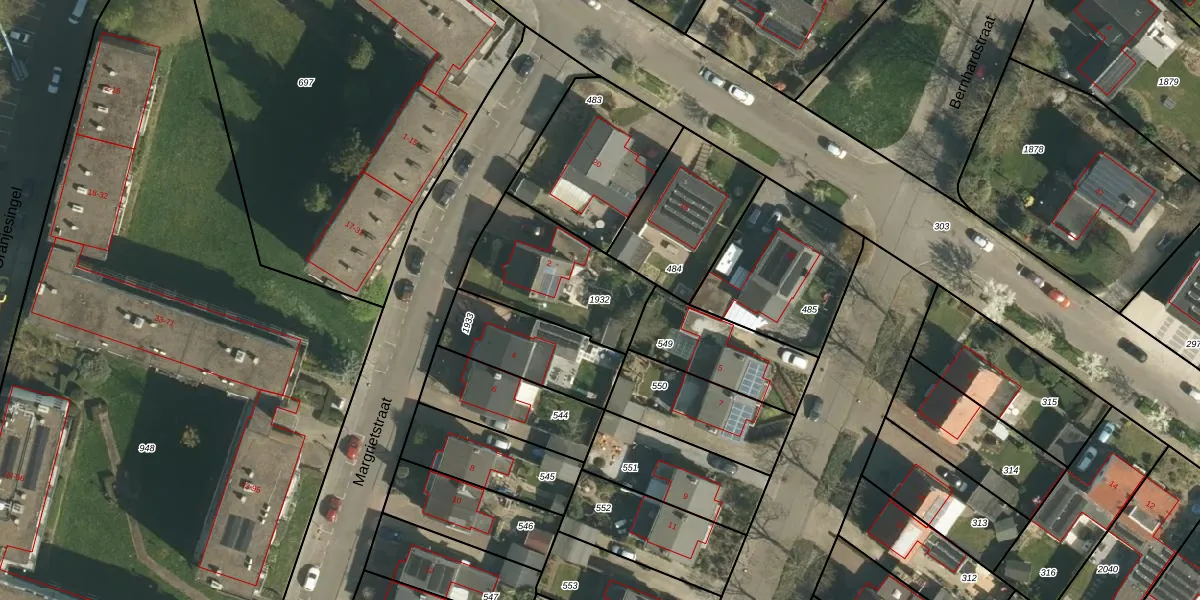 Gebruik de zoekbalk of klik op een perceel om informatie over het perceel te bekijken.