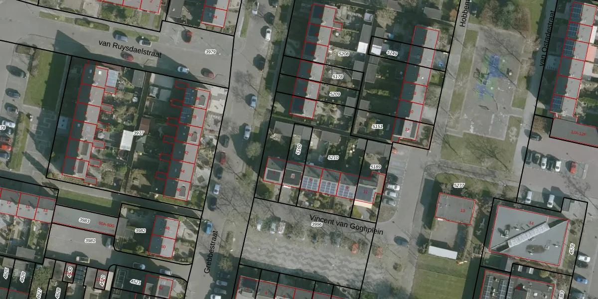 Gebruik de zoekbalk of klik op een perceel om informatie over het perceel te bekijken.
