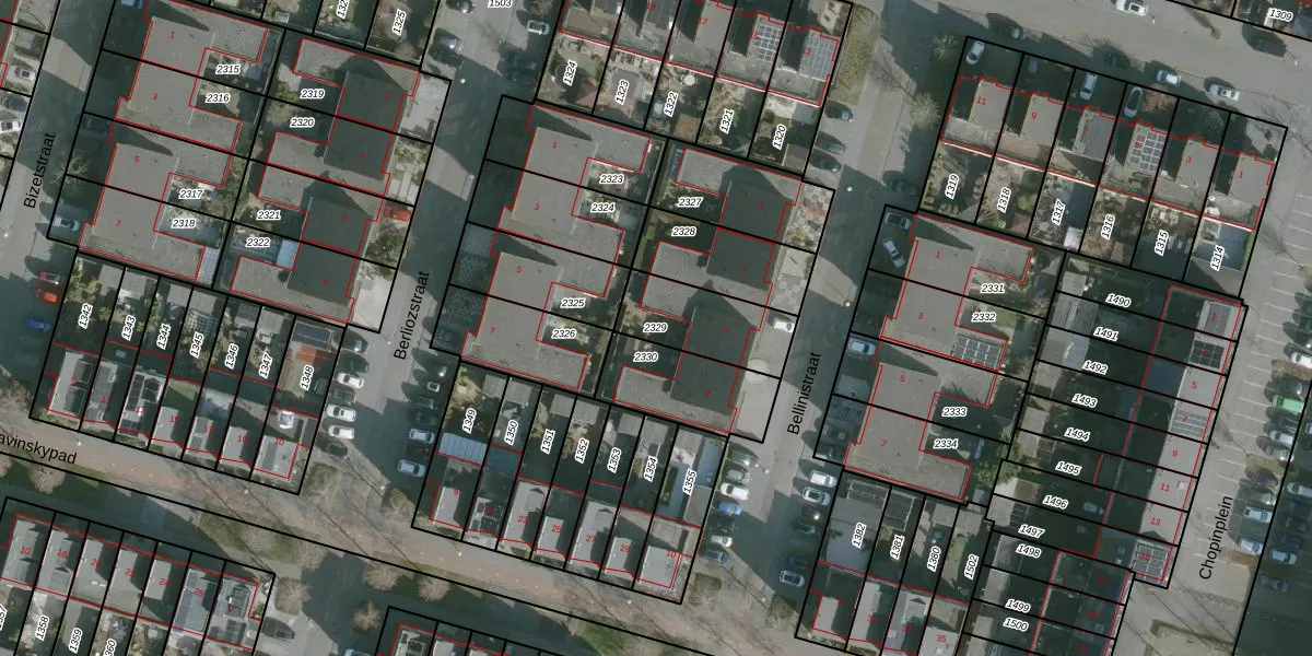 Gebruik de zoekbalk of klik op een perceel om informatie over het perceel te bekijken.