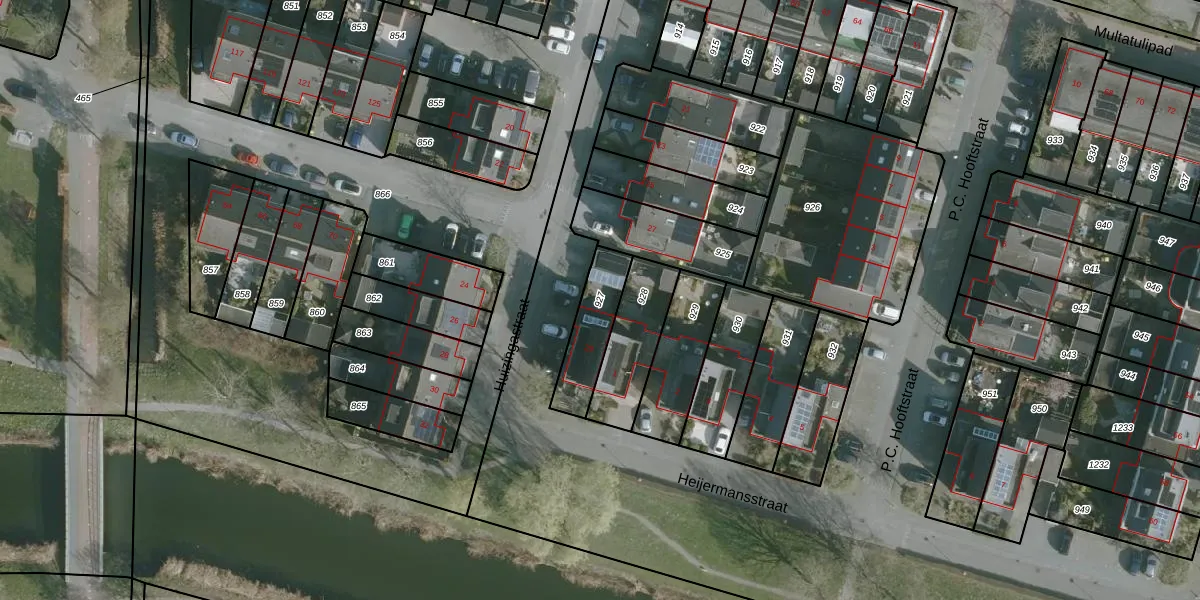 Gebruik de zoekbalk of klik op een perceel om informatie over het perceel te bekijken.