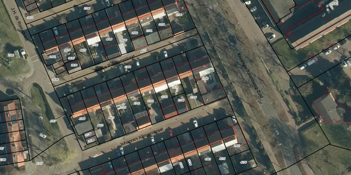 Gebruik de zoekbalk of klik op een perceel om informatie over het perceel te bekijken.