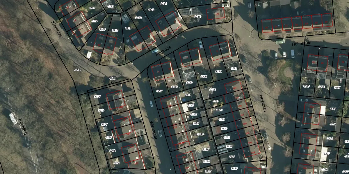 Gebruik de zoekbalk of klik op een perceel om informatie over het perceel te bekijken.
