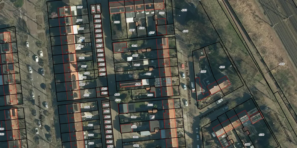 Gebruik de zoekbalk of klik op een perceel om informatie over het perceel te bekijken.