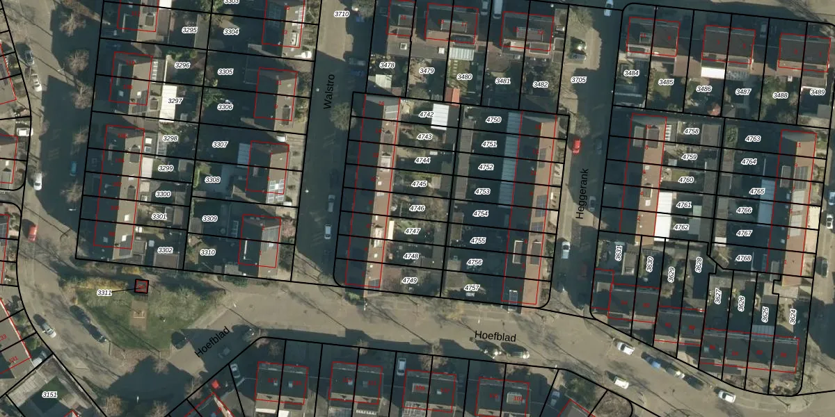 Gebruik de zoekbalk of klik op een perceel om informatie over het perceel te bekijken.