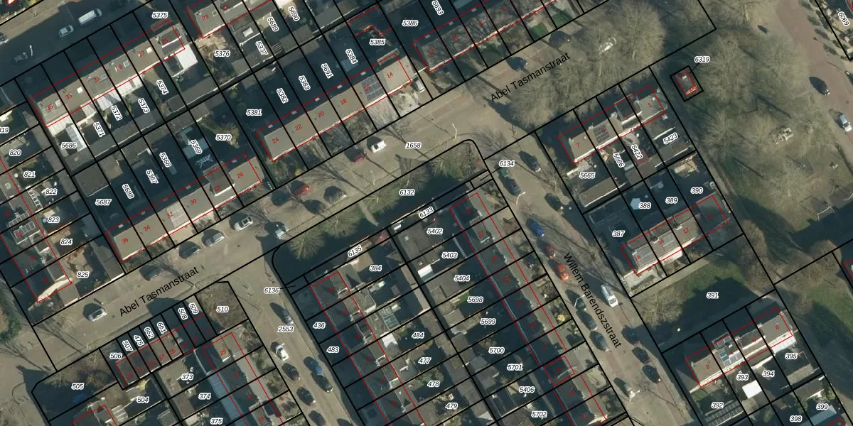 Gebruik de zoekbalk of klik op een perceel om informatie over het perceel te bekijken.