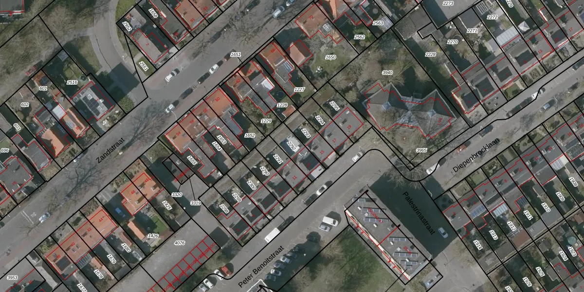 Gebruik de zoekbalk of klik op een perceel om informatie over het perceel te bekijken.