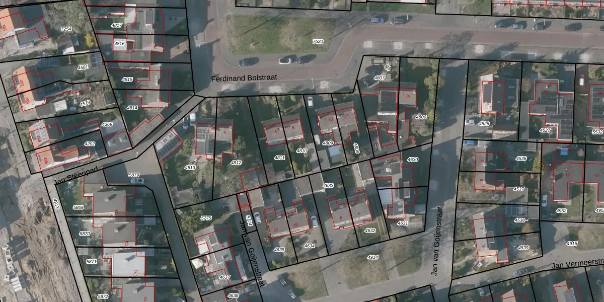 Gebruik de zoekbalk of klik op een perceel om informatie over het perceel te bekijken.