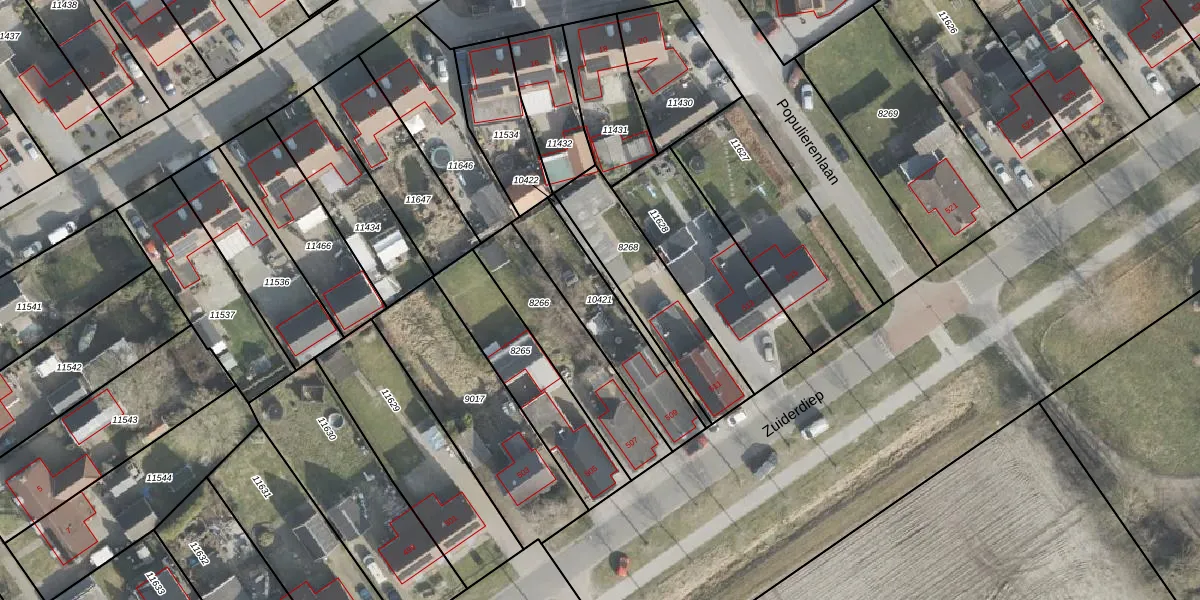 Gebruik de zoekbalk of klik op een perceel om informatie over het perceel te bekijken.