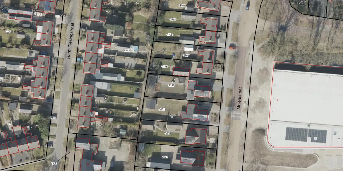 Gebruik de zoekbalk of klik op een perceel om informatie over het perceel te bekijken.