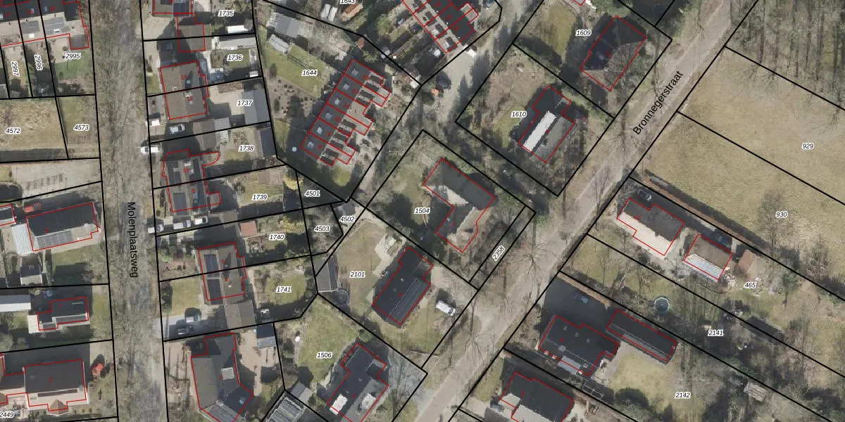 Gebruik de zoekbalk of klik op een perceel om informatie over het perceel te bekijken.