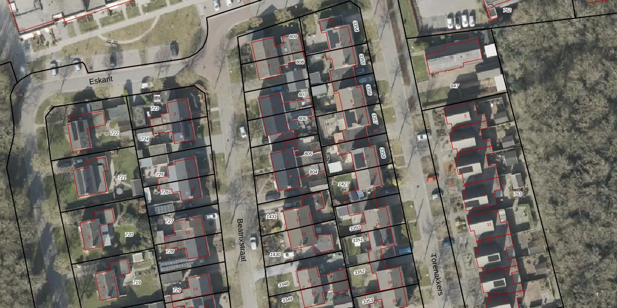 Gebruik de zoekbalk of klik op een perceel om informatie over het perceel te bekijken.