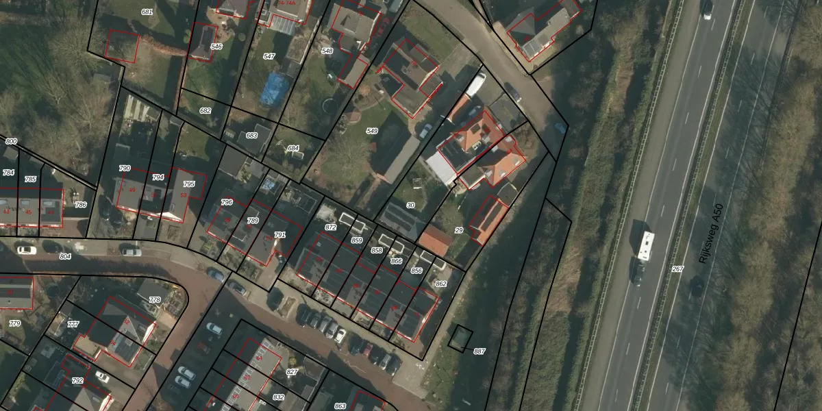 Gebruik de zoekbalk of klik op een perceel om informatie over het perceel te bekijken.