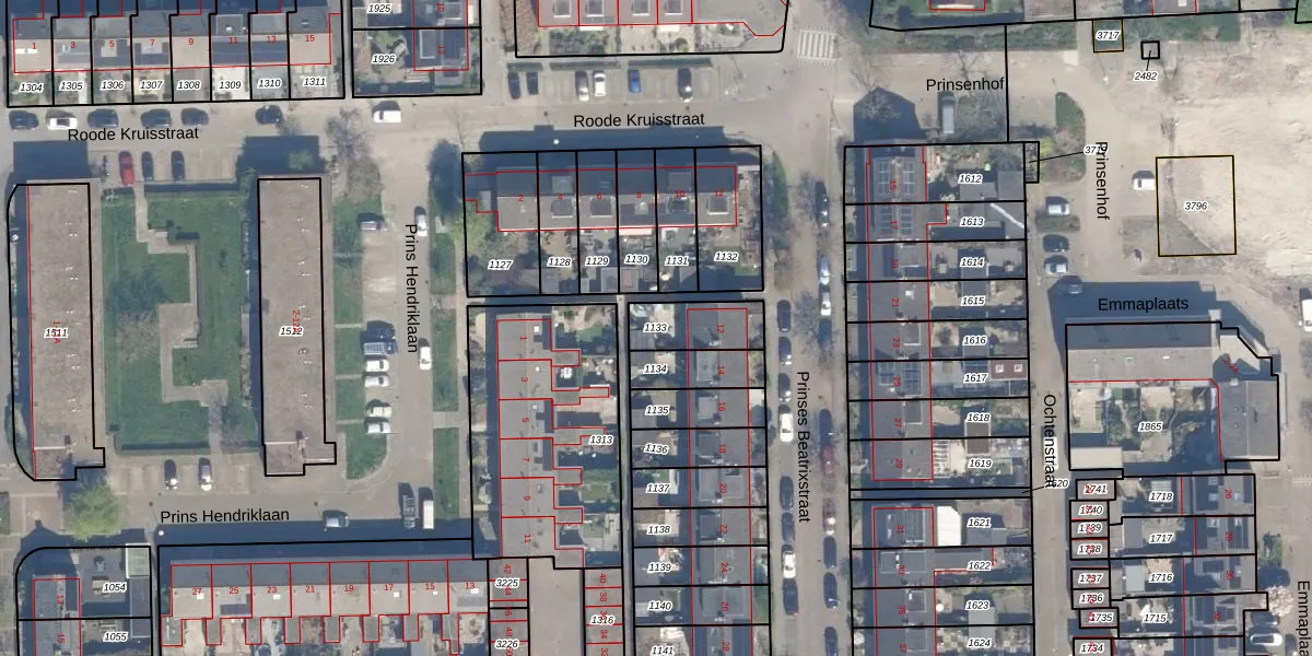 Gebruik de zoekbalk of klik op een perceel om informatie over het perceel te bekijken.