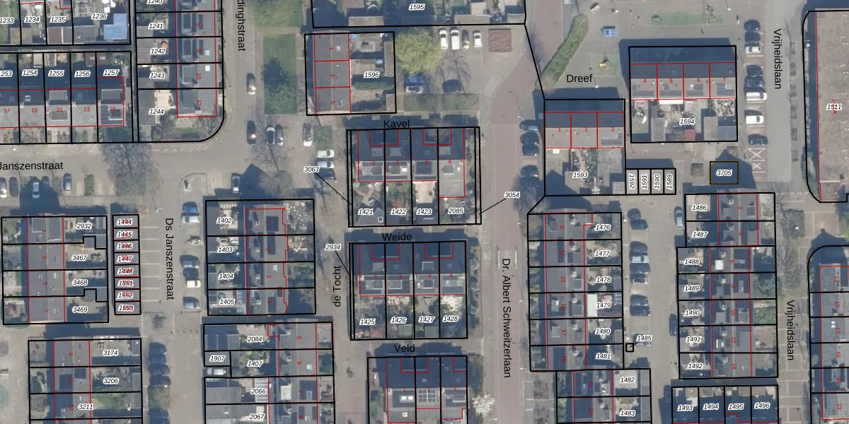 Gebruik de zoekbalk of klik op een perceel om informatie over het perceel te bekijken.