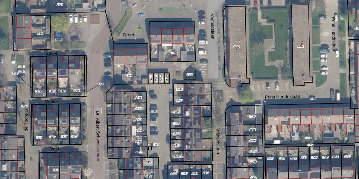 Gebruik de zoekbalk of klik op een perceel om informatie over het perceel te bekijken.