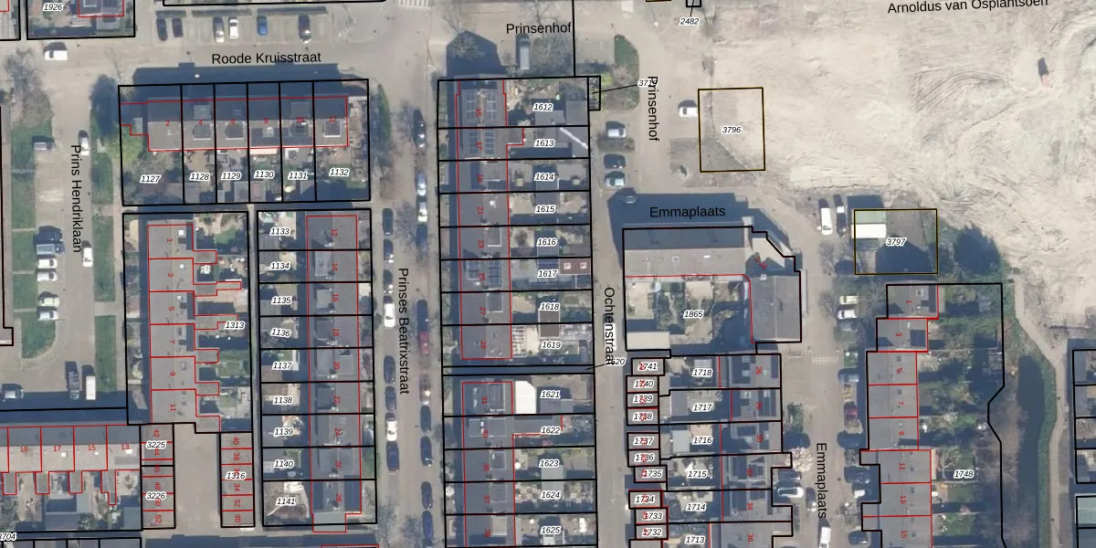 Gebruik de zoekbalk of klik op een perceel om informatie over het perceel te bekijken.
