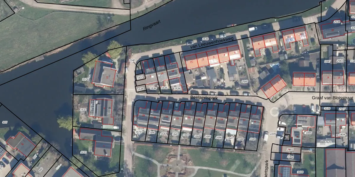 Gebruik de zoekbalk of klik op een perceel om informatie over het perceel te bekijken.