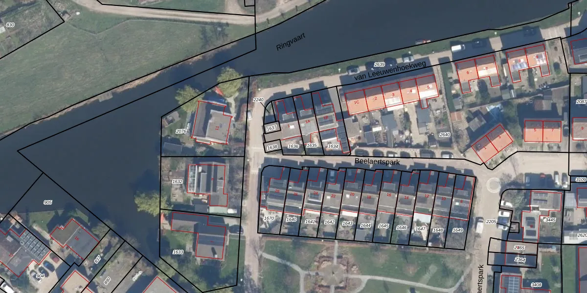 Gebruik de zoekbalk of klik op een perceel om informatie over het perceel te bekijken.