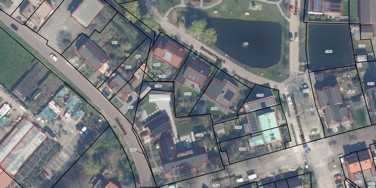 Gebruik de zoekbalk of klik op een perceel om informatie over het perceel te bekijken.