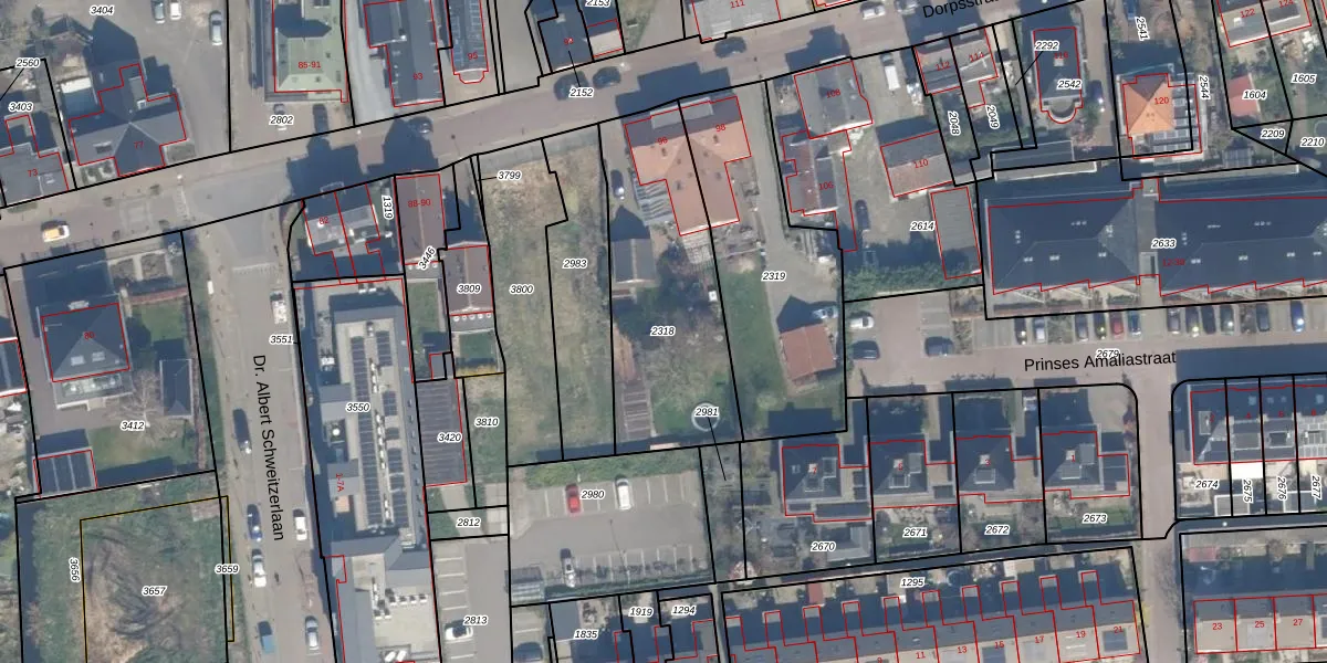 Gebruik de zoekbalk of klik op een perceel om informatie over het perceel te bekijken.