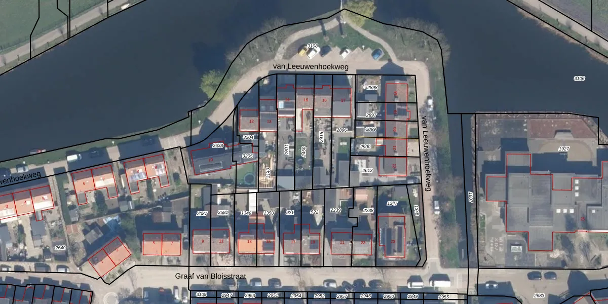 Gebruik de zoekbalk of klik op een perceel om informatie over het perceel te bekijken.