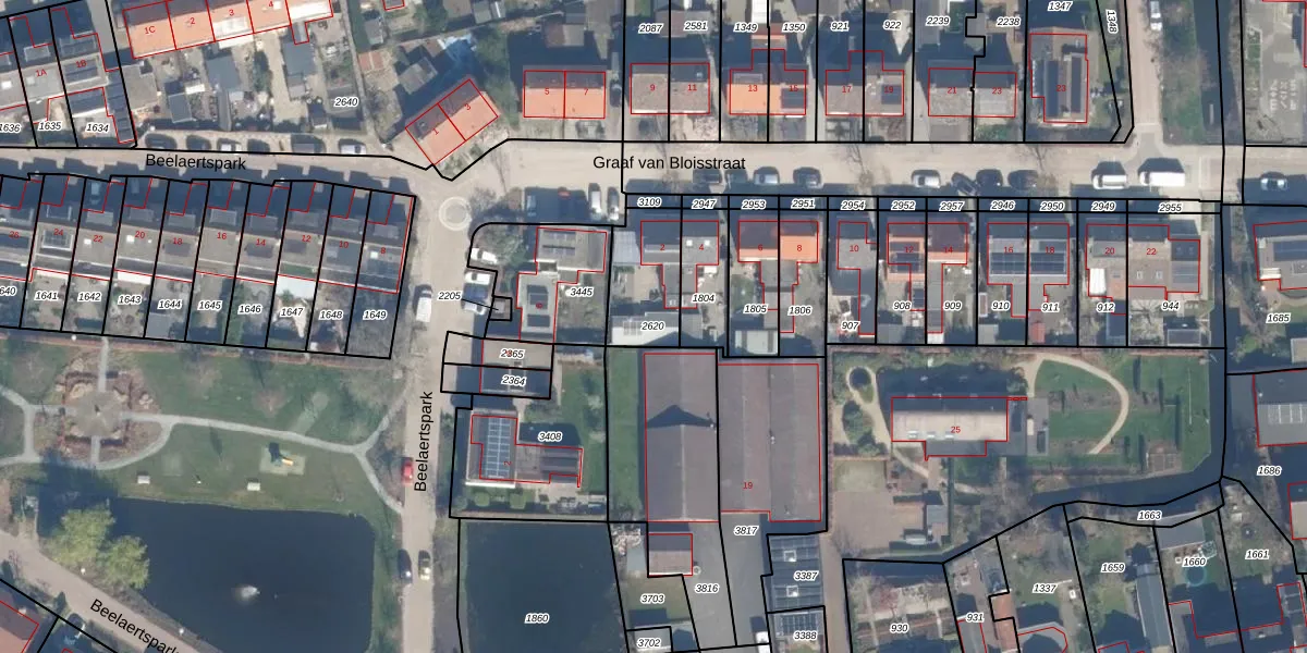 Gebruik de zoekbalk of klik op een perceel om informatie over het perceel te bekijken.