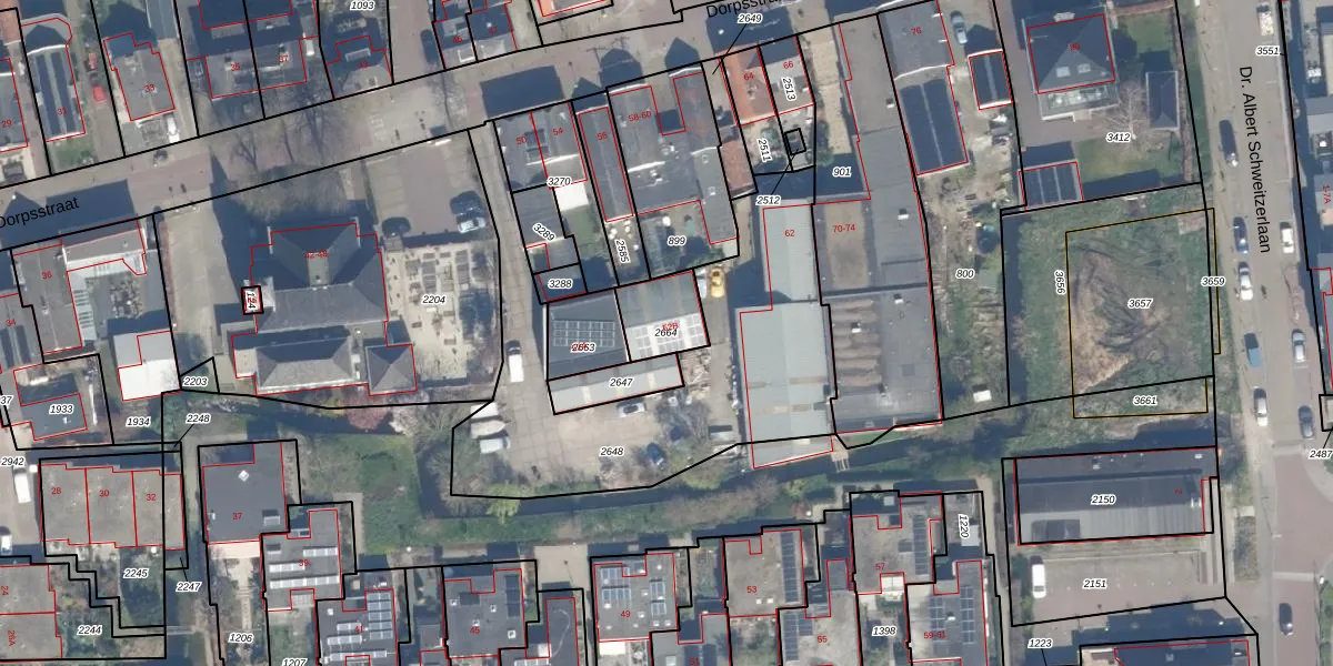 Gebruik de zoekbalk of klik op een perceel om informatie over het perceel te bekijken.