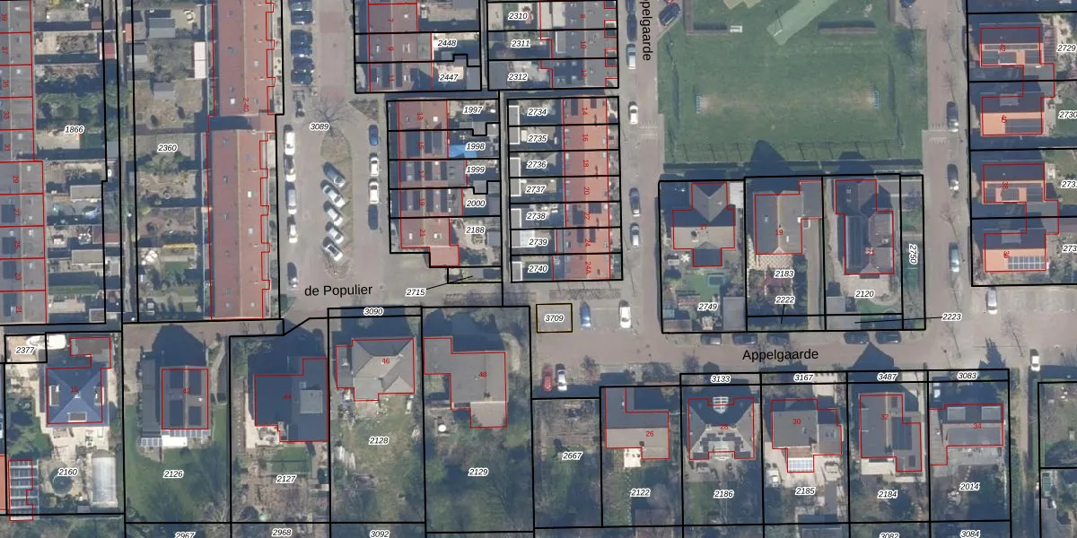 Gebruik de zoekbalk of klik op een perceel om informatie over het perceel te bekijken.