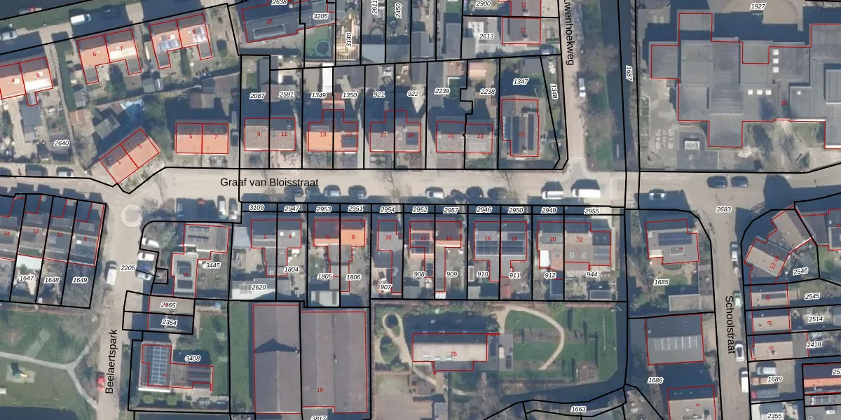 Gebruik de zoekbalk of klik op een perceel om informatie over het perceel te bekijken.