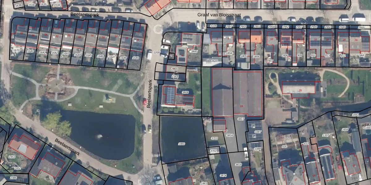 Gebruik de zoekbalk of klik op een perceel om informatie over het perceel te bekijken.